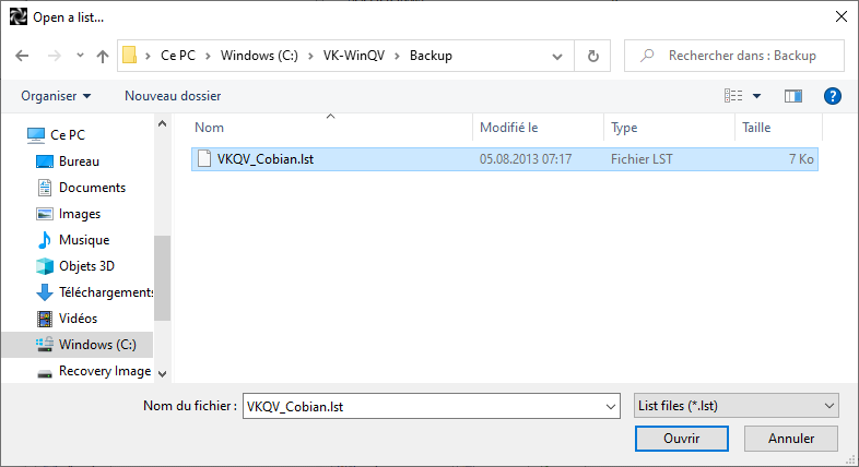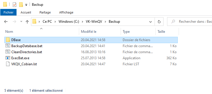 Créer manuellement le dossier source "C:\VK-WinQV\Backup\DBase":