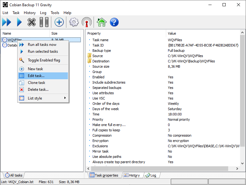 Clique droit, Edit task...