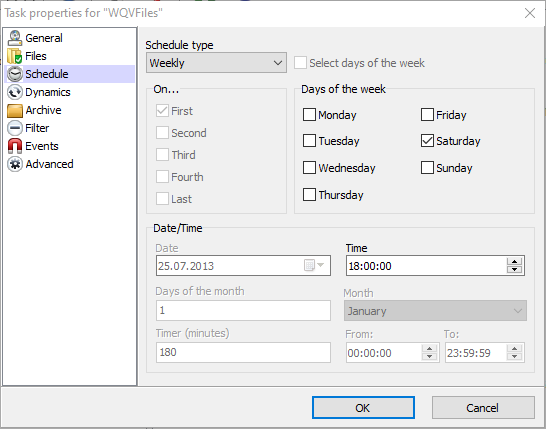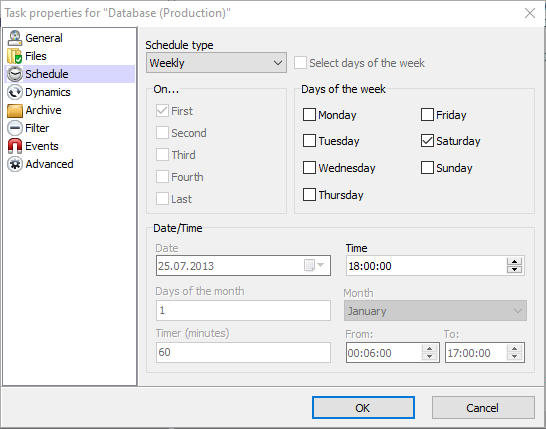 Définir la fréquence des sauvegardes: