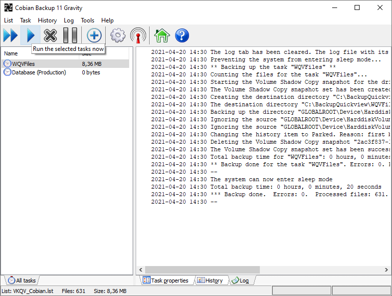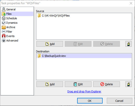 Copier le dossier "C:\VK-WinQV\Addon\Cobian\Backup" dans le dossier racine Quickview "C:\VK-WinQV\Backup"