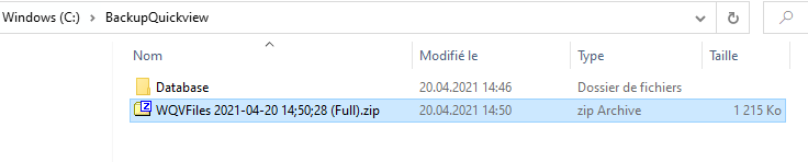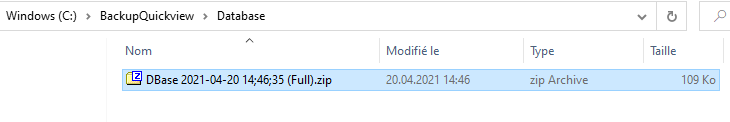 Sauvegarde de la base de donnée Quickview