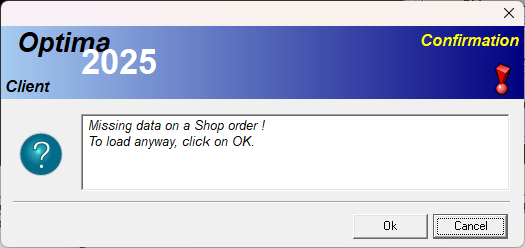 Lorsque l'on presse sur "Load", le système contrôle que tous les champs nécessaires sont remplis. Si ce n'est pas le cas, un message pop-up apparait à l'écran: