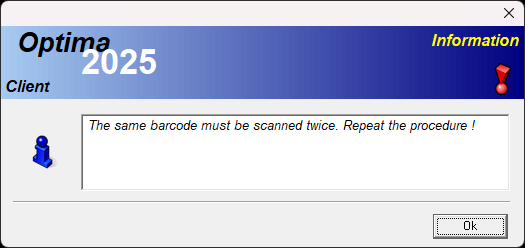Si la case "Reading 2x barcode" est cochée et que le deuxième barcode lu est différent du premier, le message suivant apparait: