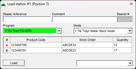 - Scan du Product Code (Produit). Règle définie selon RegEx. Le système contrôle que ce numéro existe dans la base de donnée Optima. Le premier Product Code défini le programme à utiliser. Chaque Product Code supplémentaire doivent avoir le même programme de lavage lié dans la base de donnée.