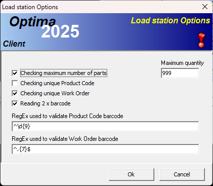 - Scan du Work Order (Lot). Règle définie selon RegEx.