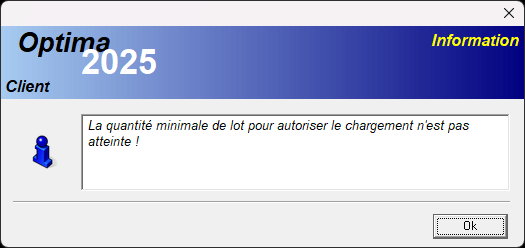 Si la quantité minimale de lot définie dans les options du poste de charge n'est pas atteinte: