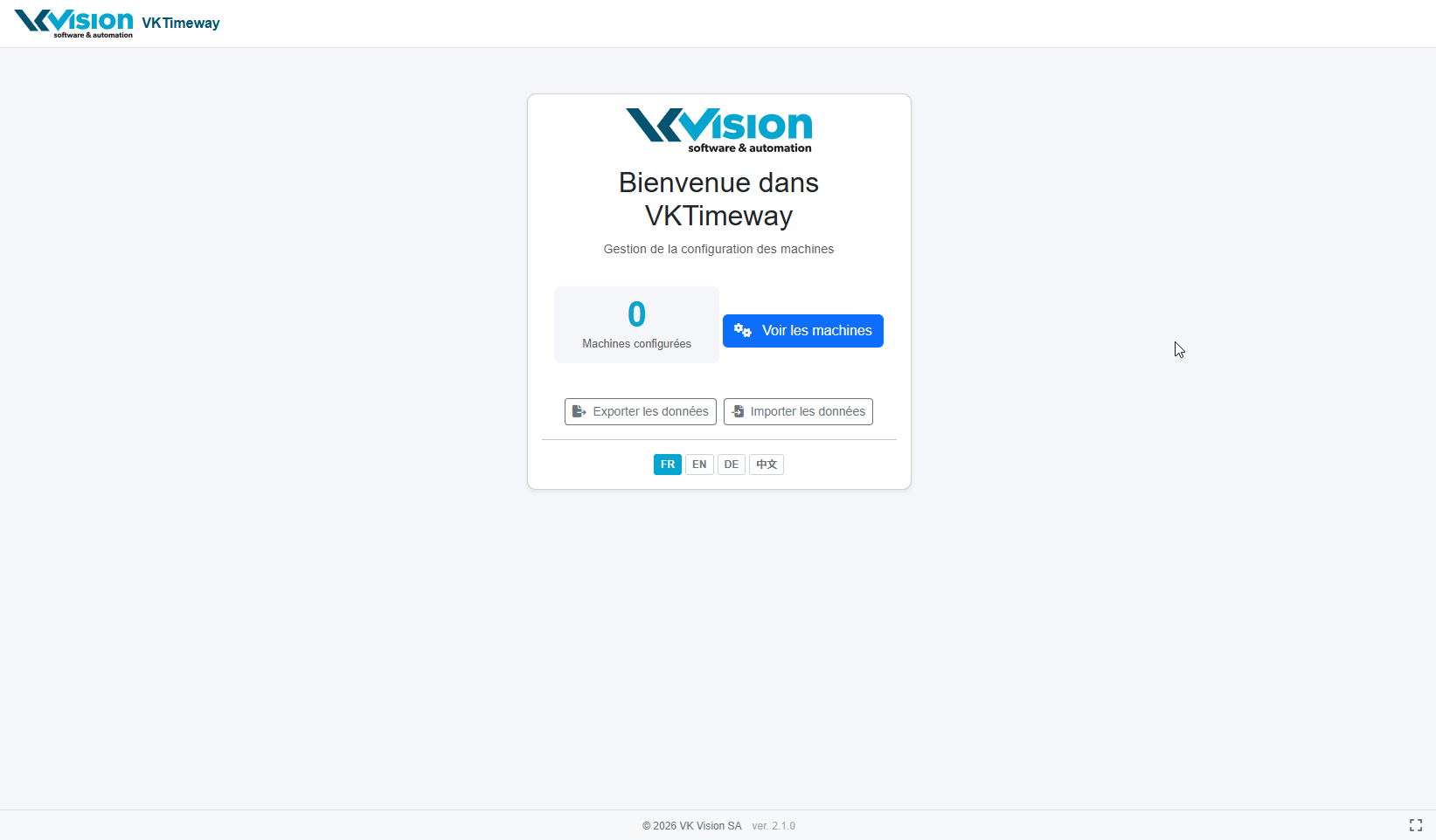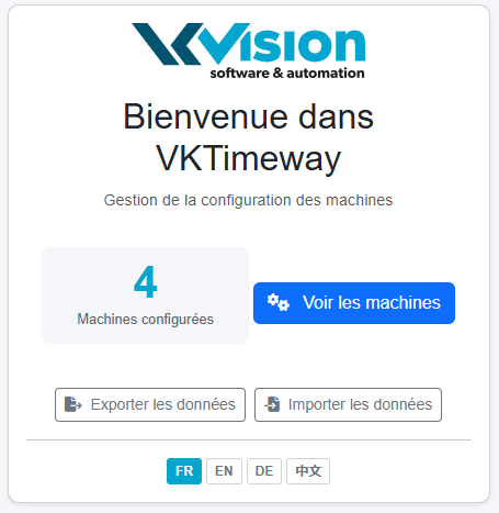 Pour lancer l'application, naviguer vers https://vkvision.ch/VKTimeway La page suivante s'affiche:
