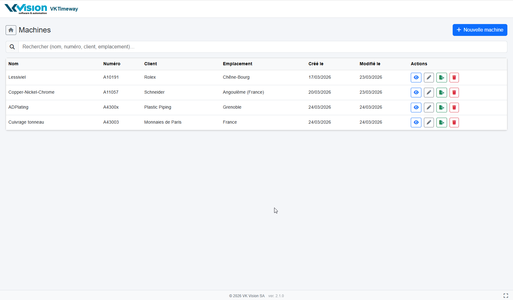 Cliquez sur le bouton [Voir les machines]. La liste des machines est affichée: