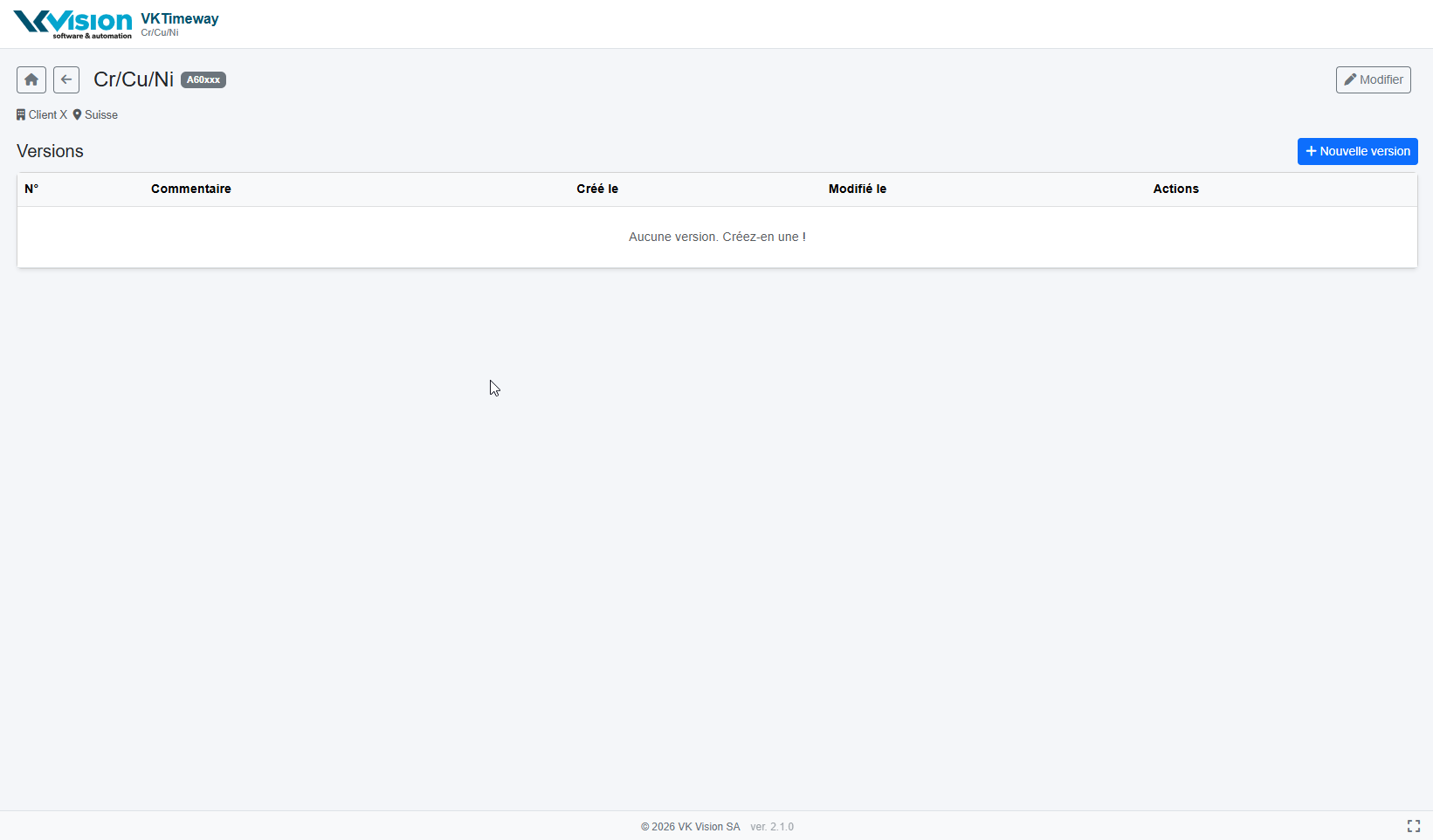 Pour créer une nouvelle version, cliquez sur [+Nouvelle version]. La page suivante s'affichera: