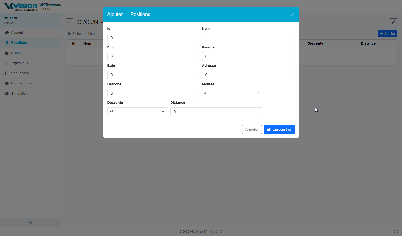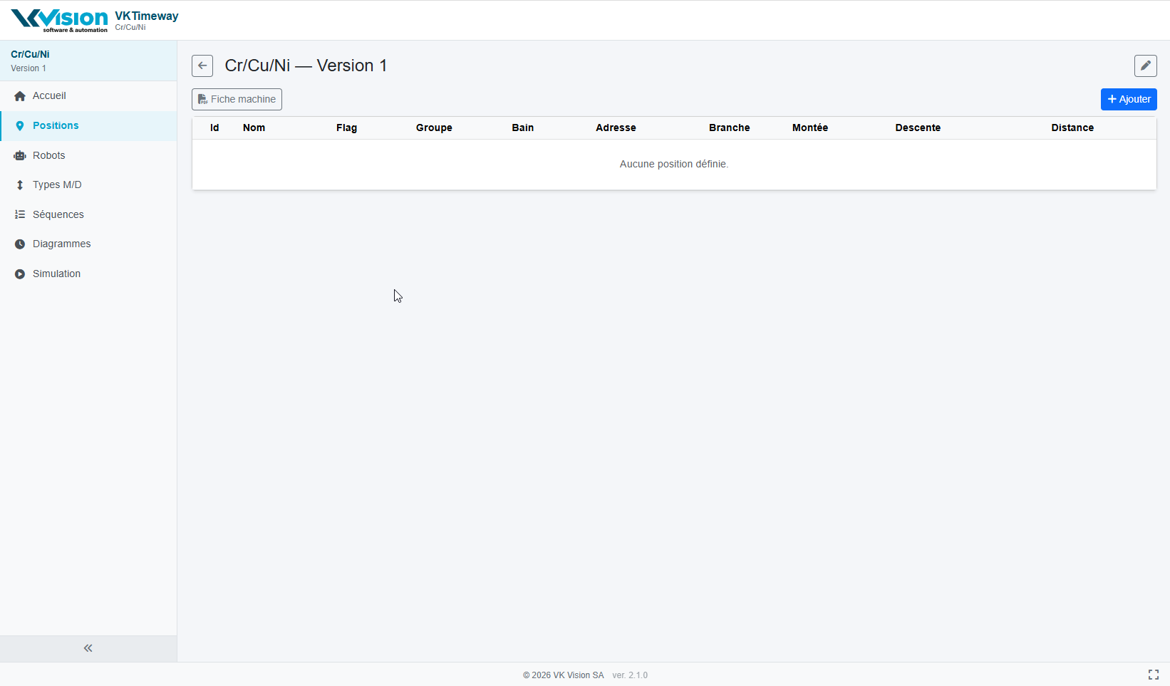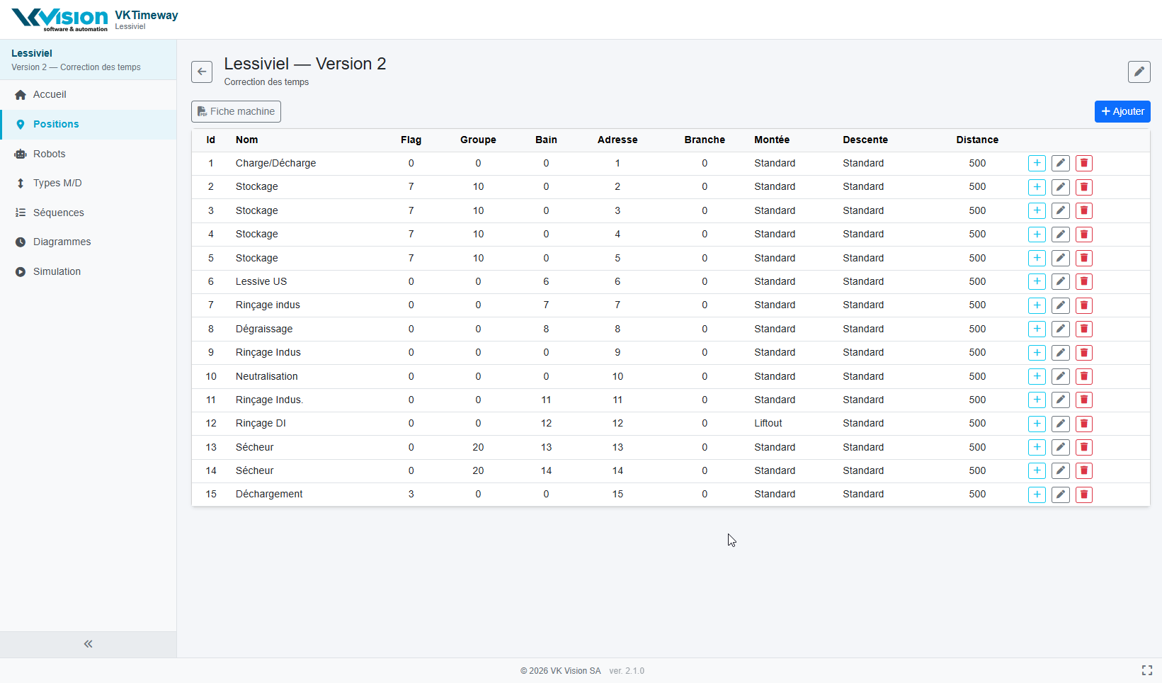 | Positions | Edition des positions de la machine |
