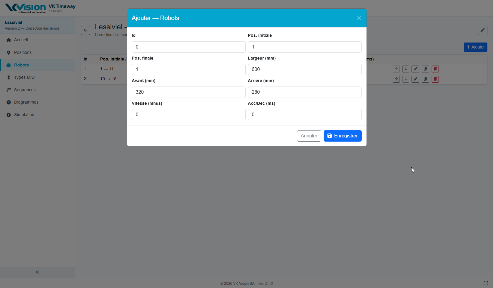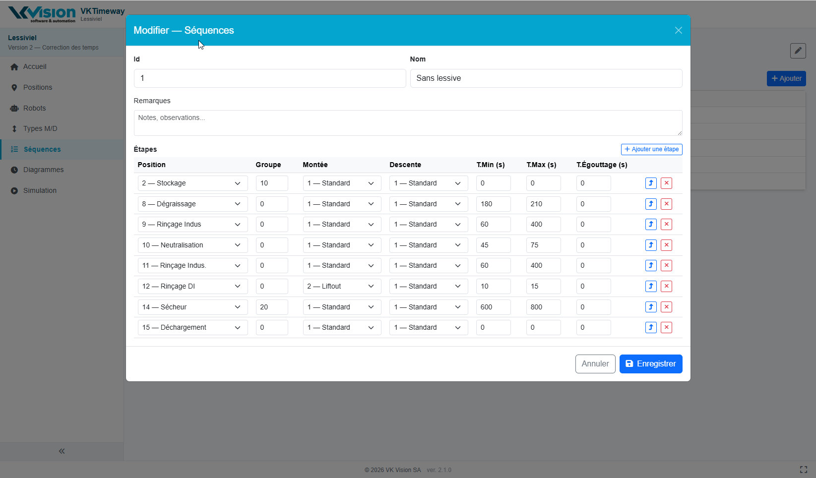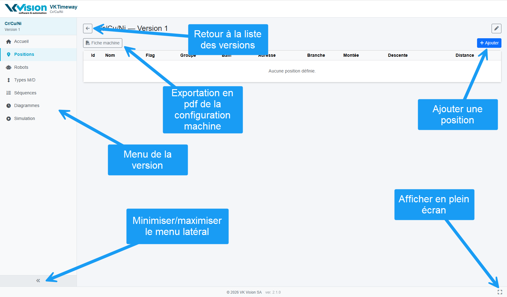 | Positions | Edition des positions de la machine |