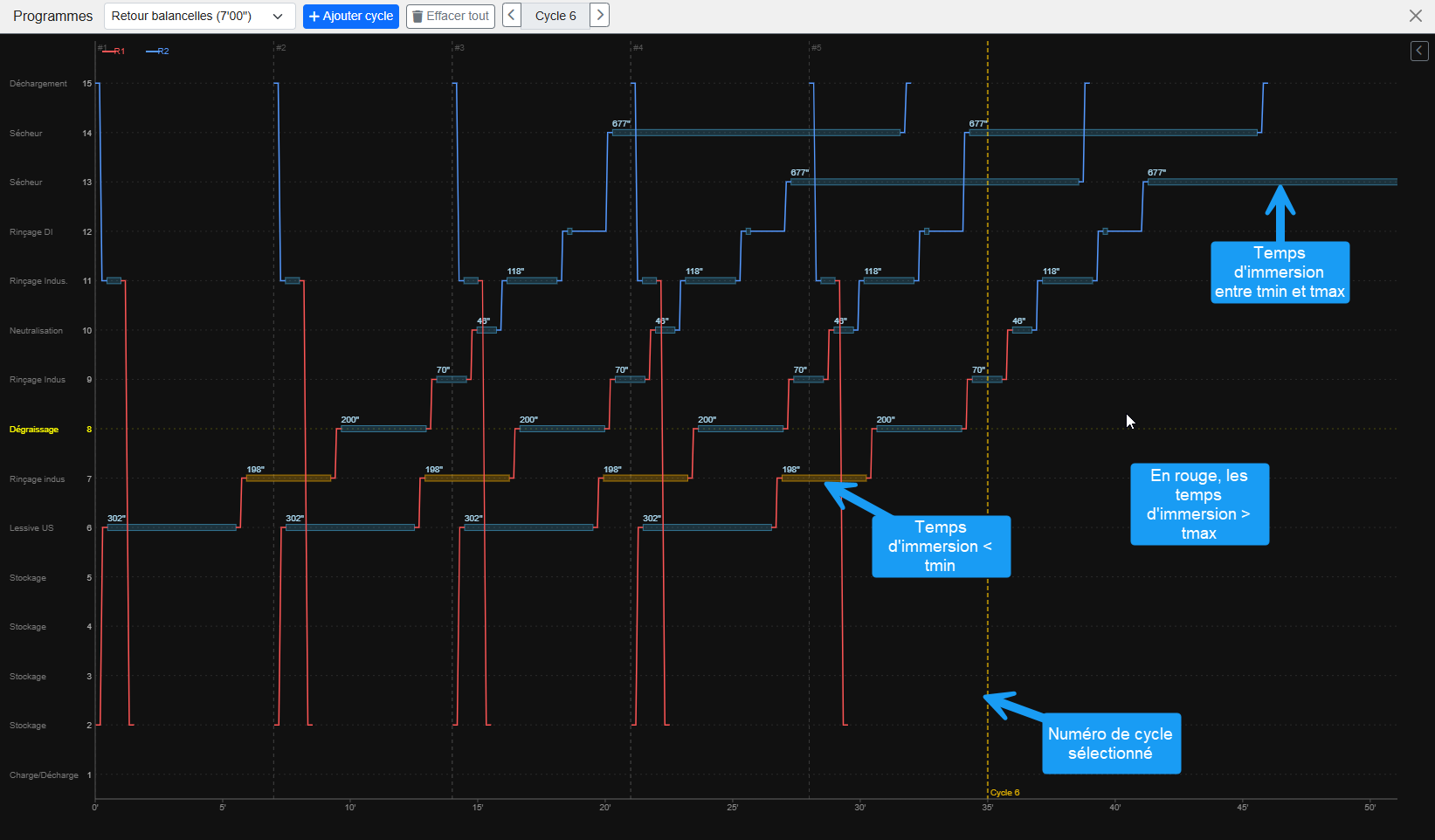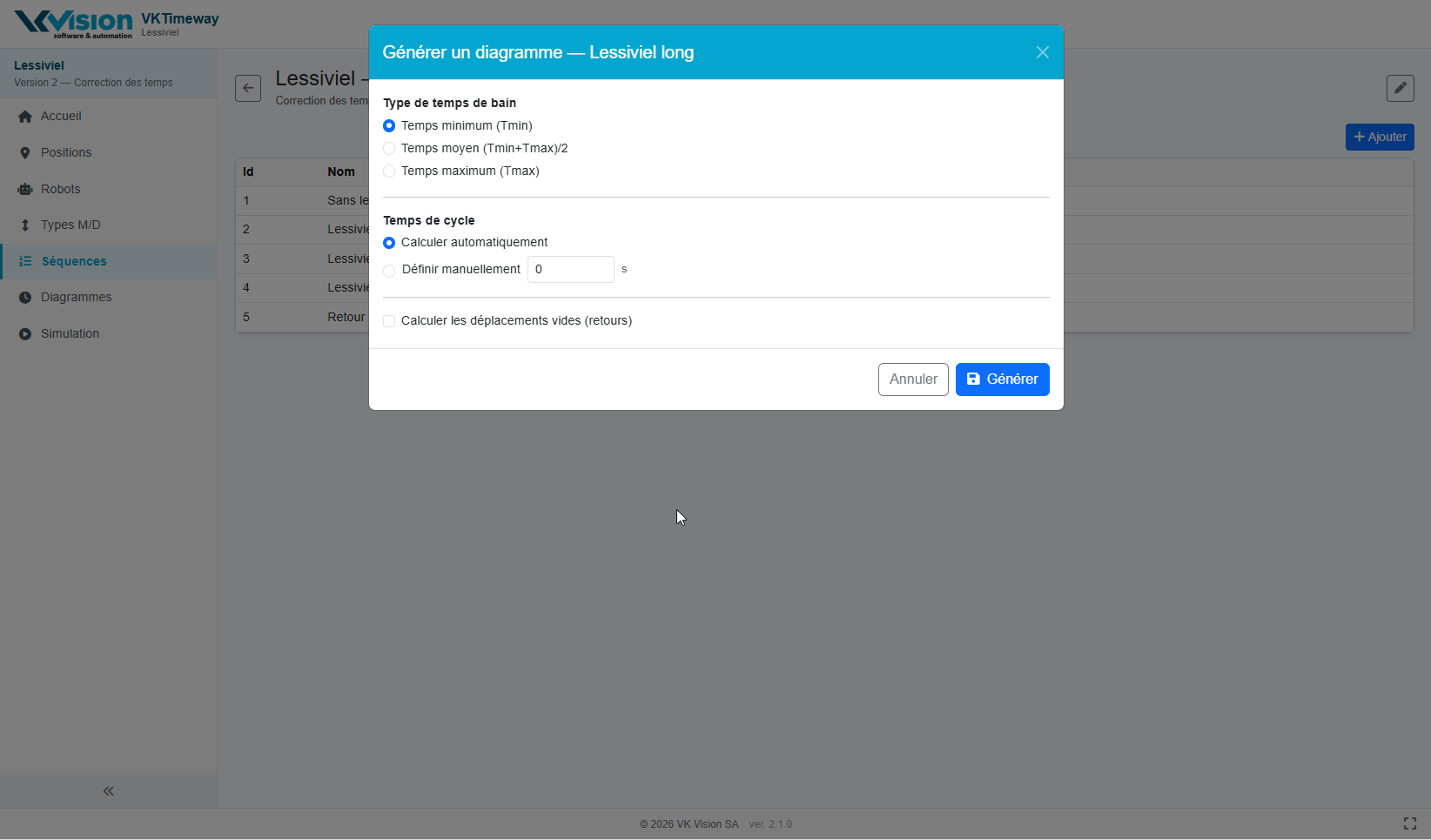 - Temps de cycle: Calculer automatiquement : le système calcul automatiquement le temps de cycle selon la liste des étapes définies, Définir manuellement en secondes